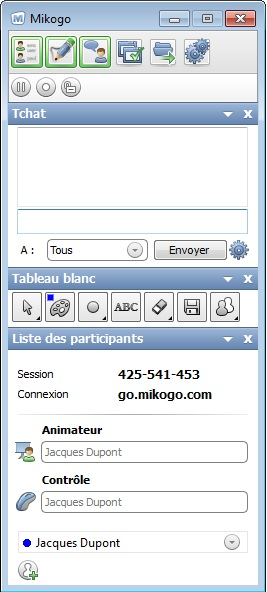 Mikogo est un logiciel sécurisé et simple d´utilisation. Quelques exemples de fonctions: partage d´écran, t´chat, changement de présentateur, commande à distance du clavier et de la souris, planificateur de réunion, enregistrement de sessions, tableau blanc, transfert de fichiers, gestionnaire de profil, mise en pause, réglage de la vitesse et de la qualité