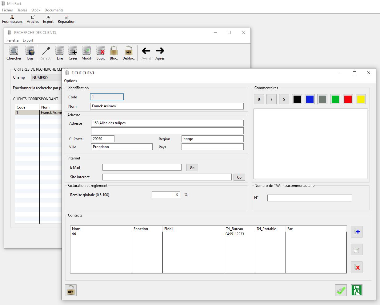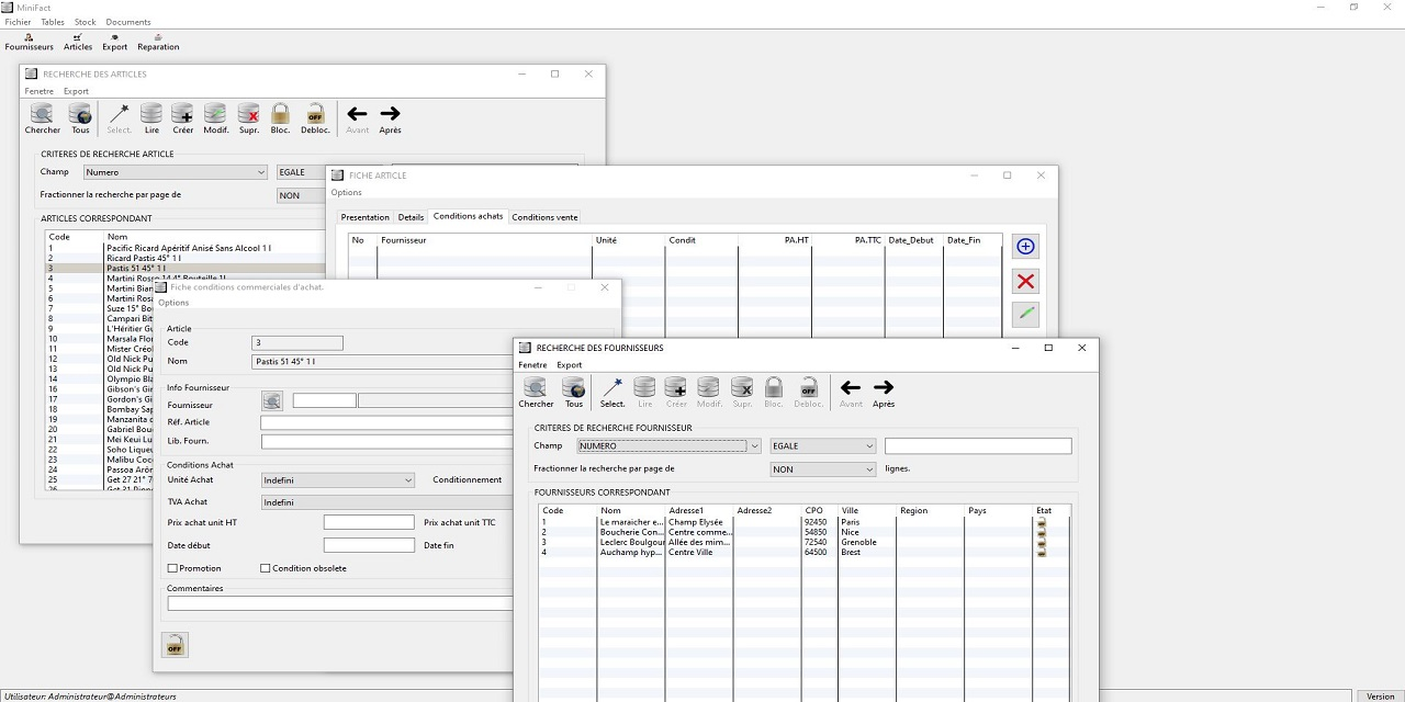 - Gestion standard des données (clients, fournisseurs, taxes, unités de mesure, code postal, produits) combinant liste et écran de saisie. Une grande partie du travail de base n'a plus besoin d'être effectuée.